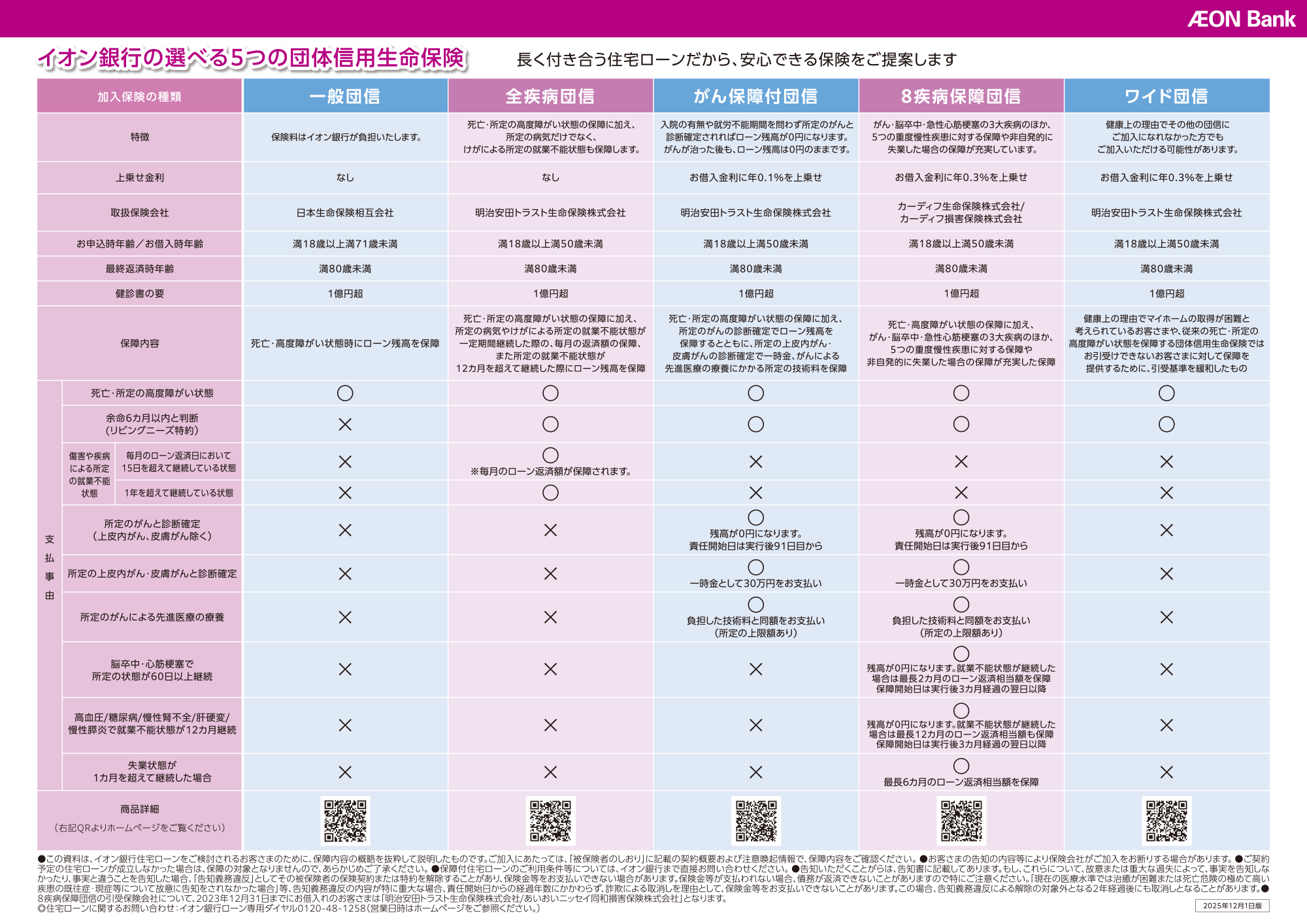 イオン銀行の選べる5つの団体信用生命保険