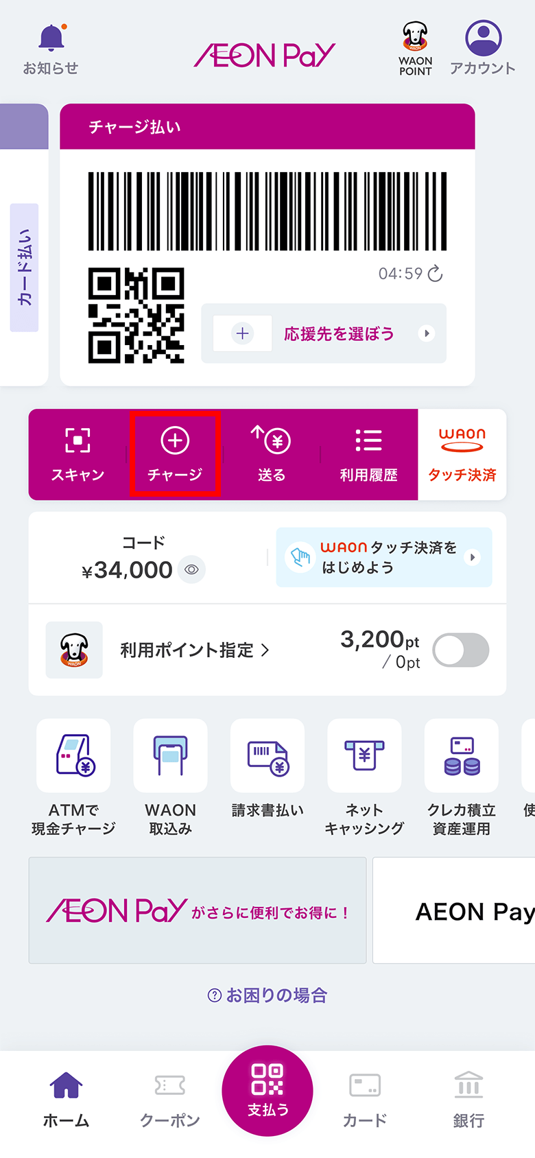 対象期間中、イオン銀行口座からAEON Pay残高へチャージをいただくこと