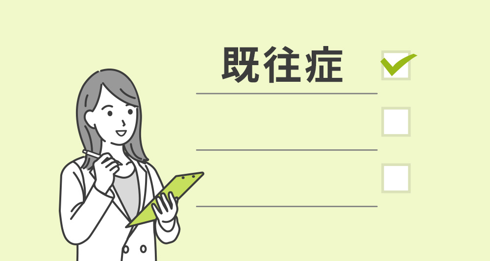 一方で、がんや脳卒中などの大病や、手術や入院を伴うケガ、出産経験やアレルギーなどが既往症に含まれます。