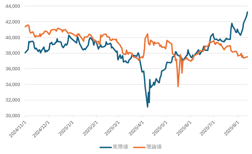 【グラフ2】日経平均実際値と理論値の推移