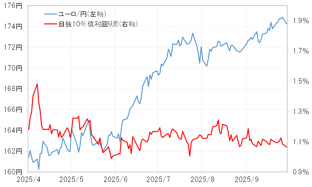 【図表2】ユーロ/円と日独金利差(2025年4月~)