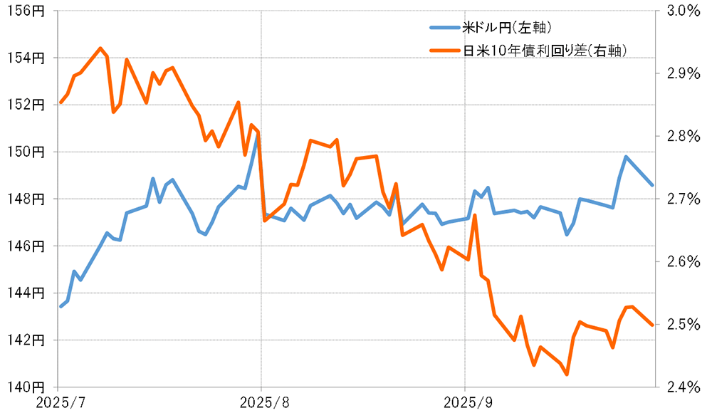 【図表3】米ドル/円と日米金利差(2025年7月~)