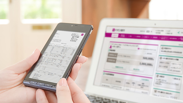 いつでもどこでもスマートフォンで「預金残高」と「入出金明細」が確認でき、お取引きごとにコメントとカテゴリの登録もできるから家計簿のような使い方もできます。