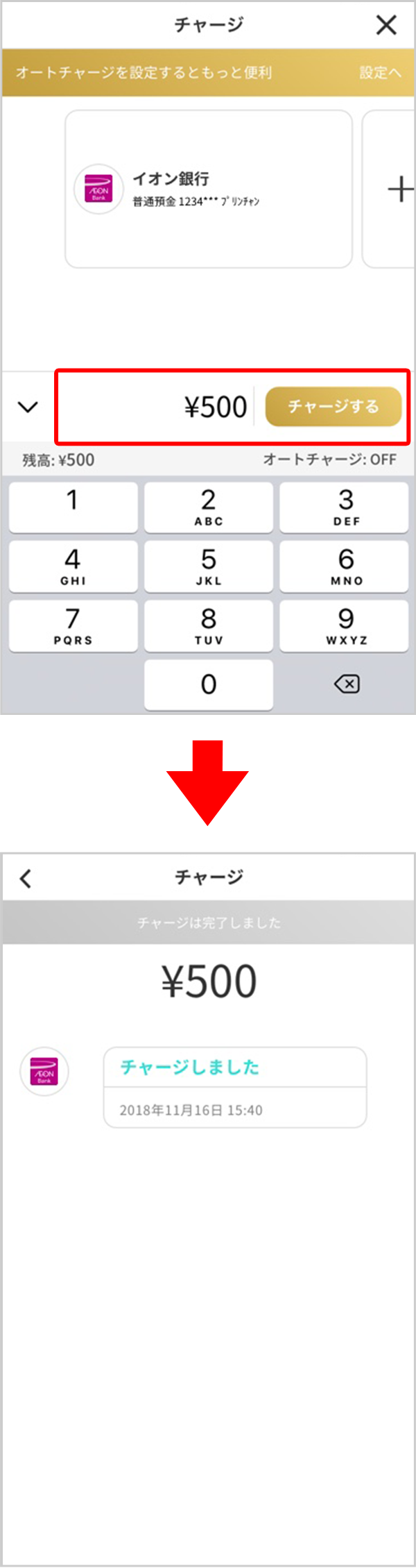 チャージ金額設定後、「チャージする」をタップしてチャージ完了!