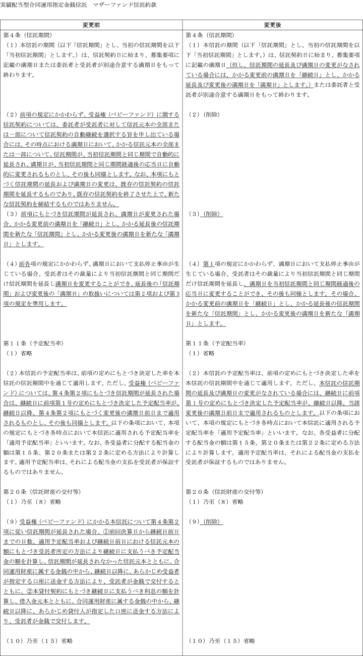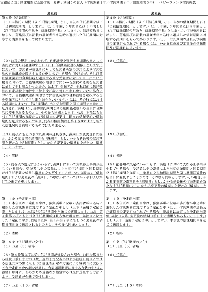 「利回りの賢人」の約款にある「信託期間の自動延長」に関する規定を削除し、関連規定も修正を行うことを予定しております。