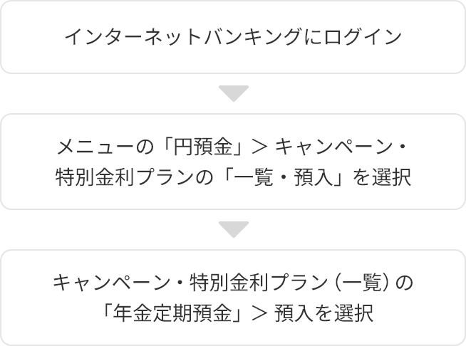 自動継続型 お預入れの定期預金を満期日に、元金継続または元利継続により、同期間の定期預金にて自動的にお預入れいただくものです。